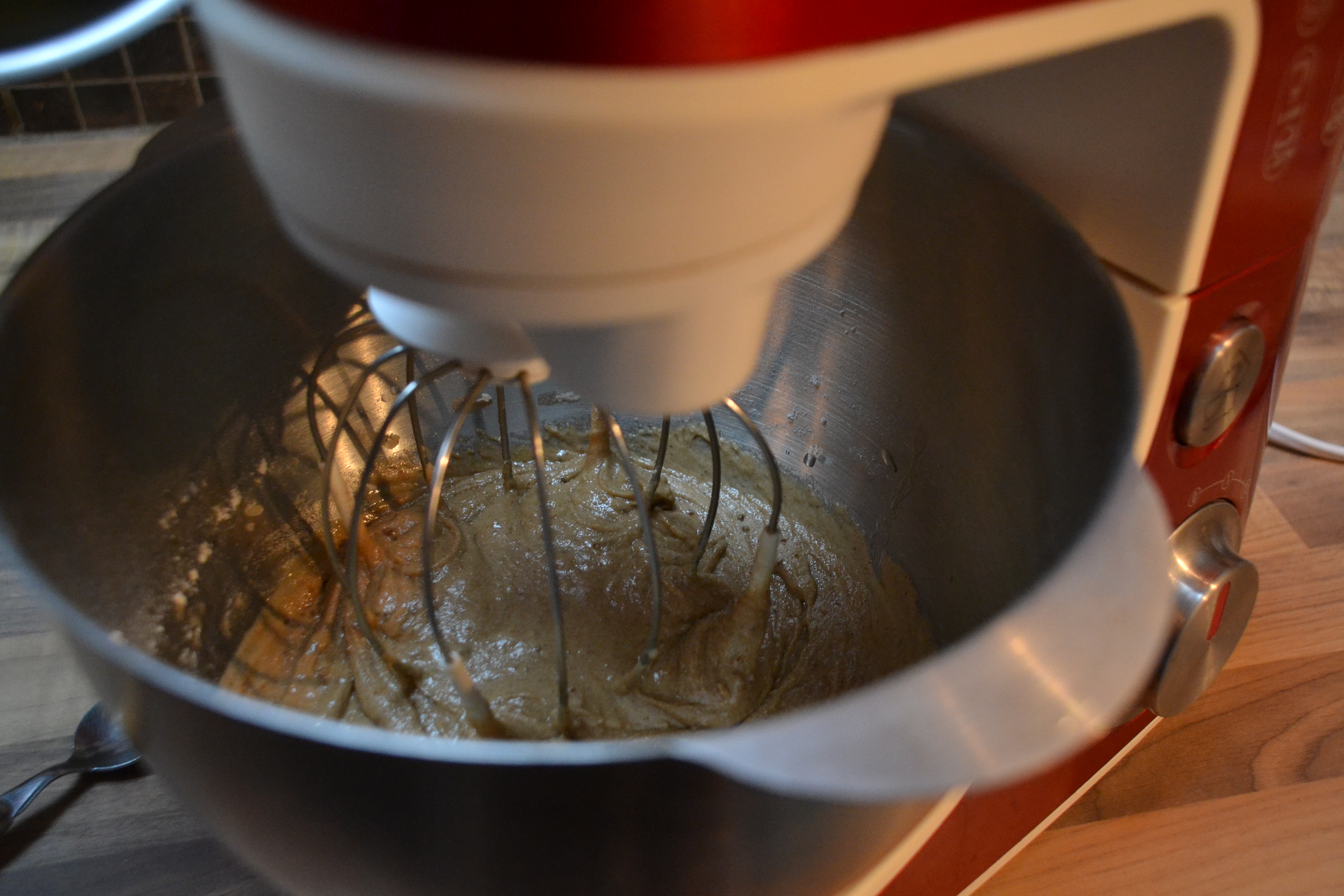 On y ajoute les œufs et on mélange. Puis on termine par l’ajout du sirop et miel mélangé et enfin les 10cl de lait ou de sirop d’orange.. On touille encore jusqu’à ce que le tout soit lié. Moi j’utilise un robot pâtissier avec le fouet mais ça peut être un autre type de robot ou vos bras !