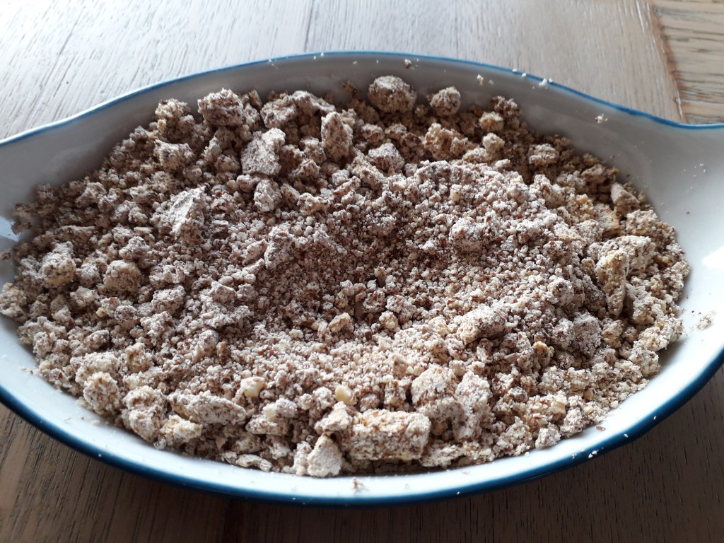Et hop on enfourne au four à 120° pour 1h30 à 3h00. La durée varie en fonction de la quantité d’OKARA, pour 1litre150 de lait d’amandes, 1h30 suffira, si vous doublez allez jusqu’à 3heures.