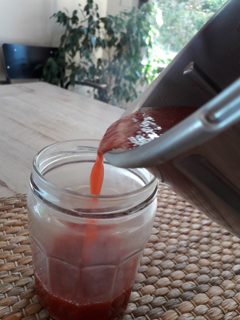 Ma recette est issue de la base recette THERMOMIX, elle est allégée en sucre. Normalement dans la confiture il y a autant de sucre que de fruits. Dans cette version, il y a quasiment moitié moins de sucre et de l’agar agar pour la consistance.