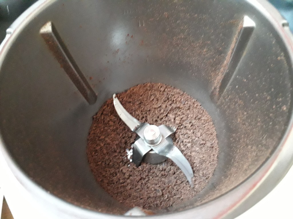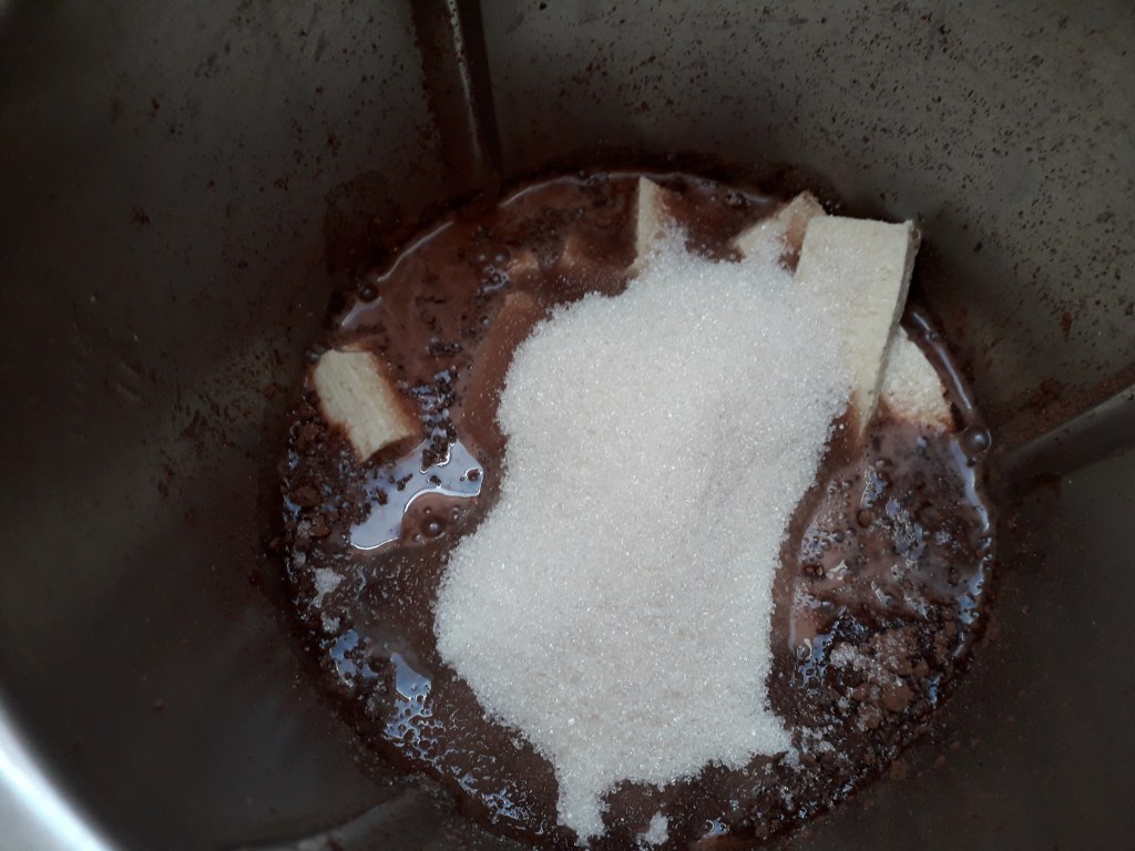 Cuire 8mn/90°/vitesse 2. Puis mixez 5 secondes/vitesse 8 pour mieux dissoudre le tofu. Si vous préférez, achetez du tofu soyeux et vous pourrez sauter cette étape. Avec du tofu soyeux vous n’aurez pas la texture granuleuse du tofu classique. Chacun ses goûts….