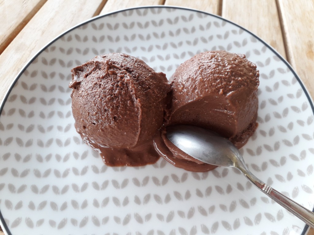 Quand on mange sans gluten, ni lactose, il reste les sorbets…..mais le sorbet pour une gourmande c’est bon mais pas suffisant. Je me suis donc lancée assez rapidement dans la réalisation de la glace au chocolat. Je suis partie de la recette de base de mon ami Momix (mon ami pour la vie :). Évidemment avec un autre bon robot ça marche !