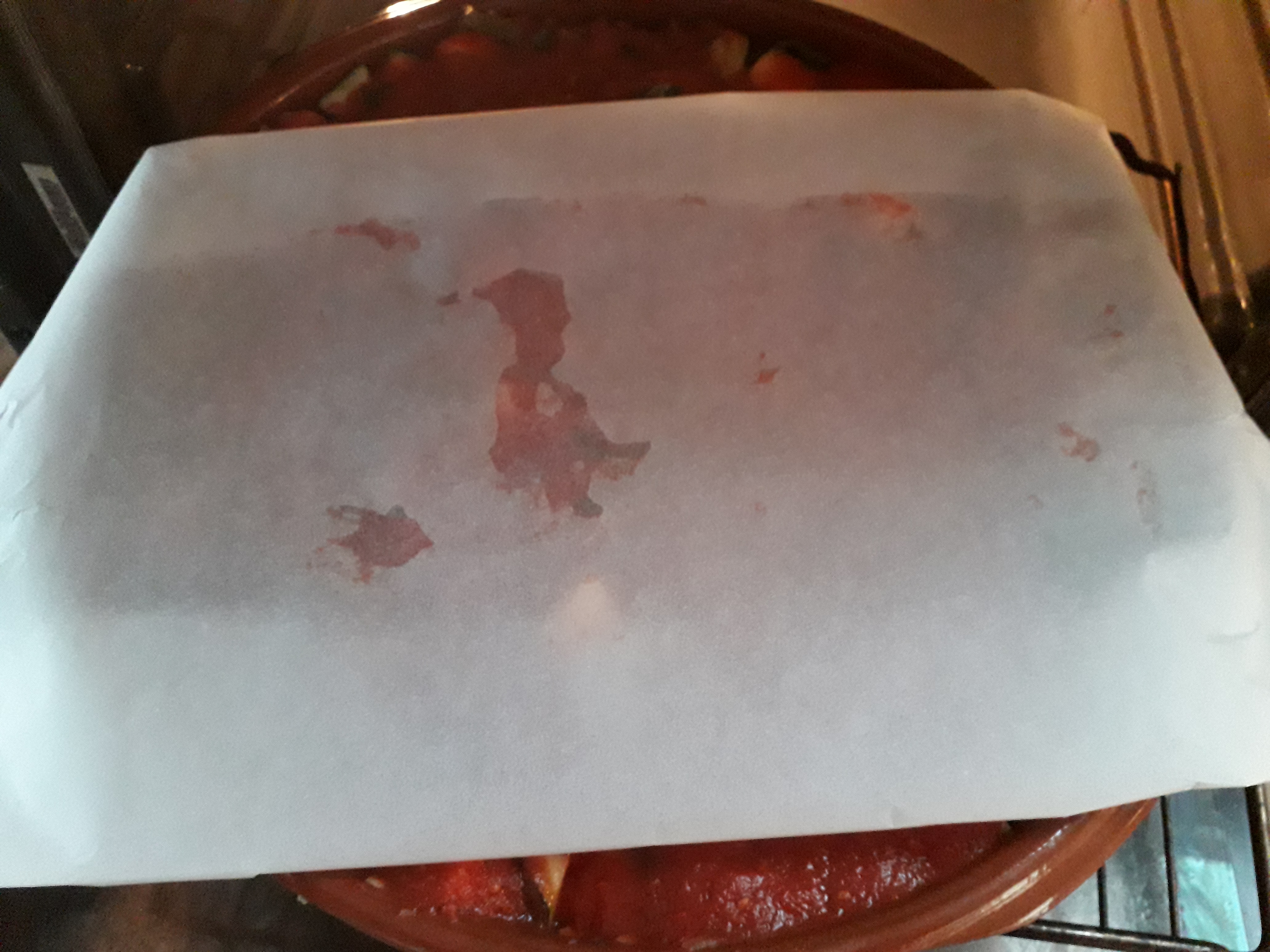 Le lendemain, jour de la dégustation, remuez tous les légumes pour les mélanger. Recouvrez à nouveau la moitié du plat et la cuisson repart pour 2 heures à 120°.