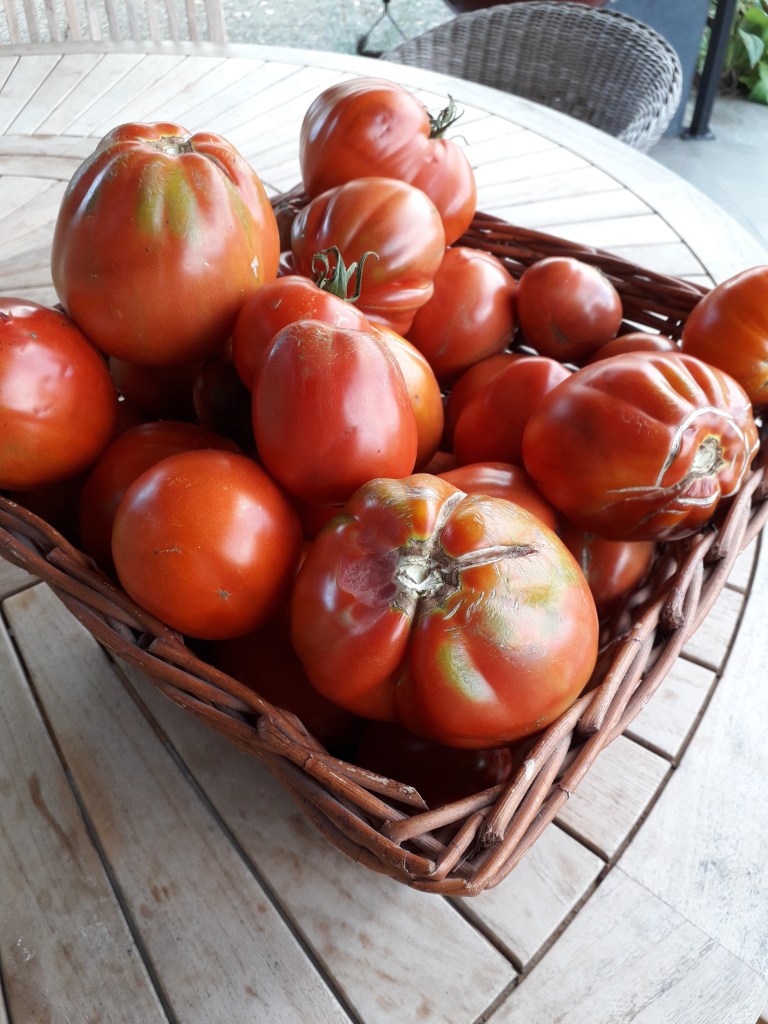 C’est en effet le moment de la récolte au jardin : les tomates donnent à foison, les betteraves doivent être ramassées si elles sont trop grosses, et les potimarrons aux feuilles fanées sont à point. Pour certain il reste encore des haricots verts et autres légumes pour les meilleurs jardiniers 😉 Par exemple, si les courgettes continuent de donner, c’est courgettes farcies au congélo.