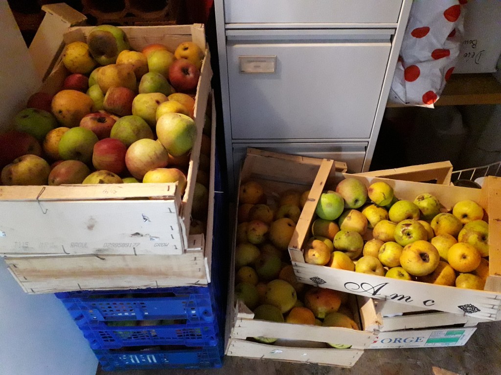 S’agissant des pommes nous sommes des grands fous dans la famille, on en mange beaucoup crues, cuites mais aussi en compote. Cette année entre les pommes gentiment offertes par les parents de mes amies (Clin d’œil aux vendéens Joseph et Marie-Andrée et aux Vayens Jean-Louis et Marie-France) et celles ramassées dans mon jardin et celui de mes voisins, j’en ai transformé 100kgs en compote. Le reste est acheté chez le fournisseur bio local, de bonnes pommes, des gens sympas, du circuit court bien plaisant !