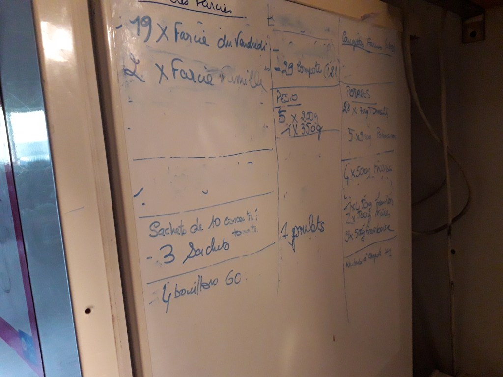 Tout est noté sur un tableau Weleda au dessus des congélateurs, et à chaque fois que nous nous servons, nous décomptons. Nous ne perdons jamais rien au congélateur. Tout est calculé et consommé.
