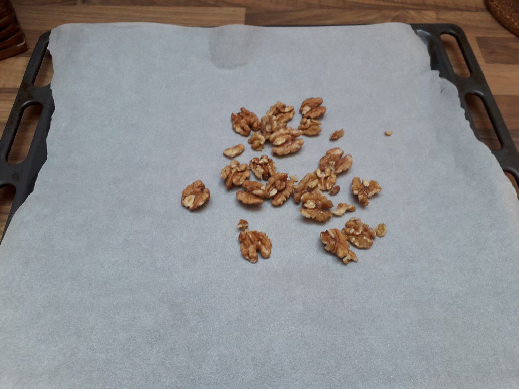Préchauffez votre four à 200°. Cette température atteinte, enfournez les noix (sur du papier cuisson) pendant 10 minutes. Les ressortir immédiatement.