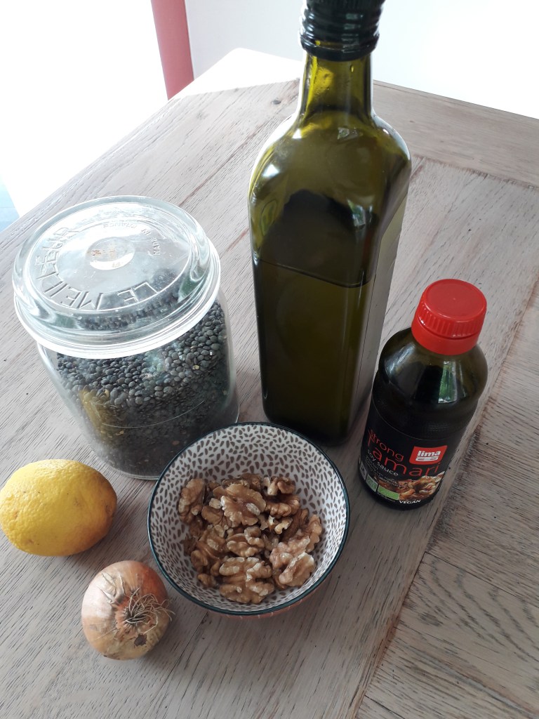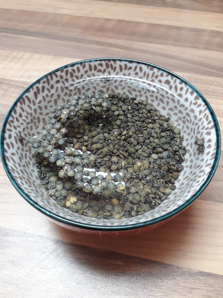 - 100 grammes de lentilles crues vertes, brunes ou noires.