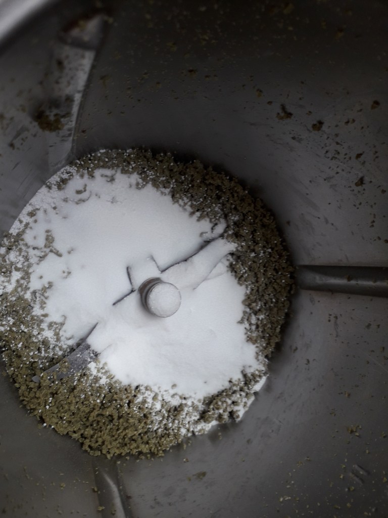 Ajoutez les cristaux de soude, le bicarbonate de soude et le litre d’eau. Cuire 15mns/70°/vit3.