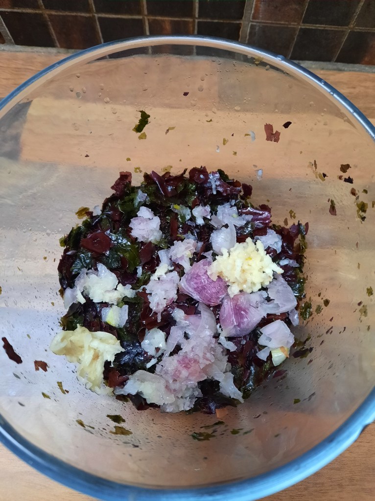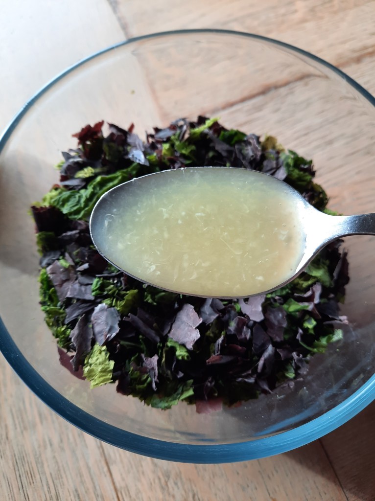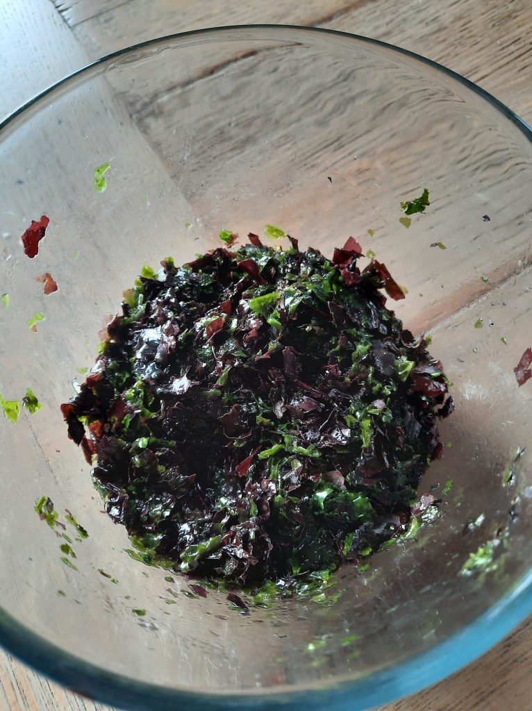 Anticipez surtout car dans un premier temps il faut faire mariner les algues avec l’eau, le citron et l’huile. Mélangez et attendez minimum 4h.