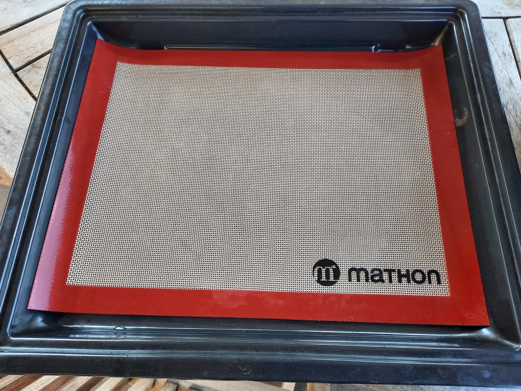 Commençons par équeuter puis laver les tomates. Prenez un plat en terre, en verre ou mieux encore le lèche frite du four. Déposez-y une feuille de papier cuisson, moi vous le constaterez je fais gaffe à la planète et j’utilise une feuille de cuisson universelle (merci ma grande poulette de ce cadeau 😉 )